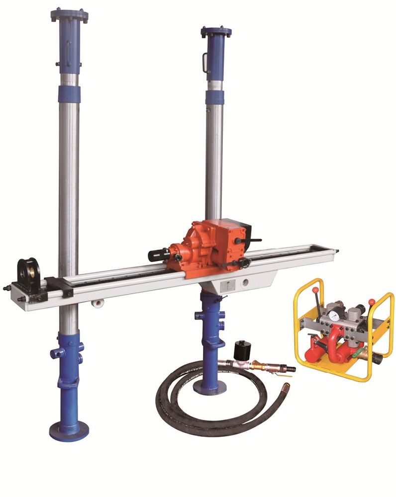 一般礦井在掘進前都要進行超前探放水,利用氣動架柱鉆機等探水設(shè)備打幾十米甚至一百米的探水孔,根據(jù)鉆頭的推進速度、巖屑成分等地質(zhì)資料,初步斷定巷道周圍的水質(zhì)水量,因此氣動架柱鉆機是預(yù)防突水、涌水等災(zāi)害的發(fā)生主要工具。